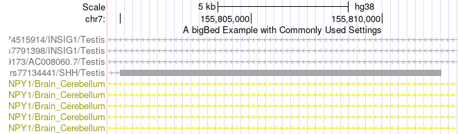 Here is a screenshot of what this basic bigBed track looks like displayed in the Genome Browser: