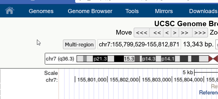 Click-and-Drag the ruler at the top of the image will bring up a menu to zoom into or highlight the region. Click-and-Drag anywhere else on the Genome Browser image to scroll to the left or right.