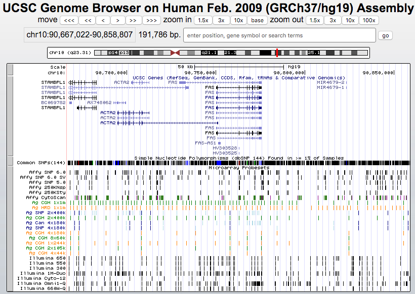 Another example featuring the Segmental Dups track is the 15q11 Prader-Willi region in which same-chromosome duplications lead to gain and loss of copies and a rare genetic disorder when some genes are deleted or unexpressed.