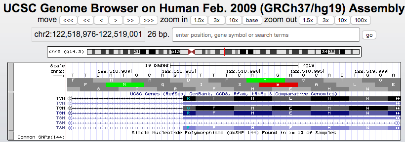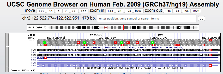European descent. The UCSC Genes track was forced to skip the codon to indicate a full-length coding